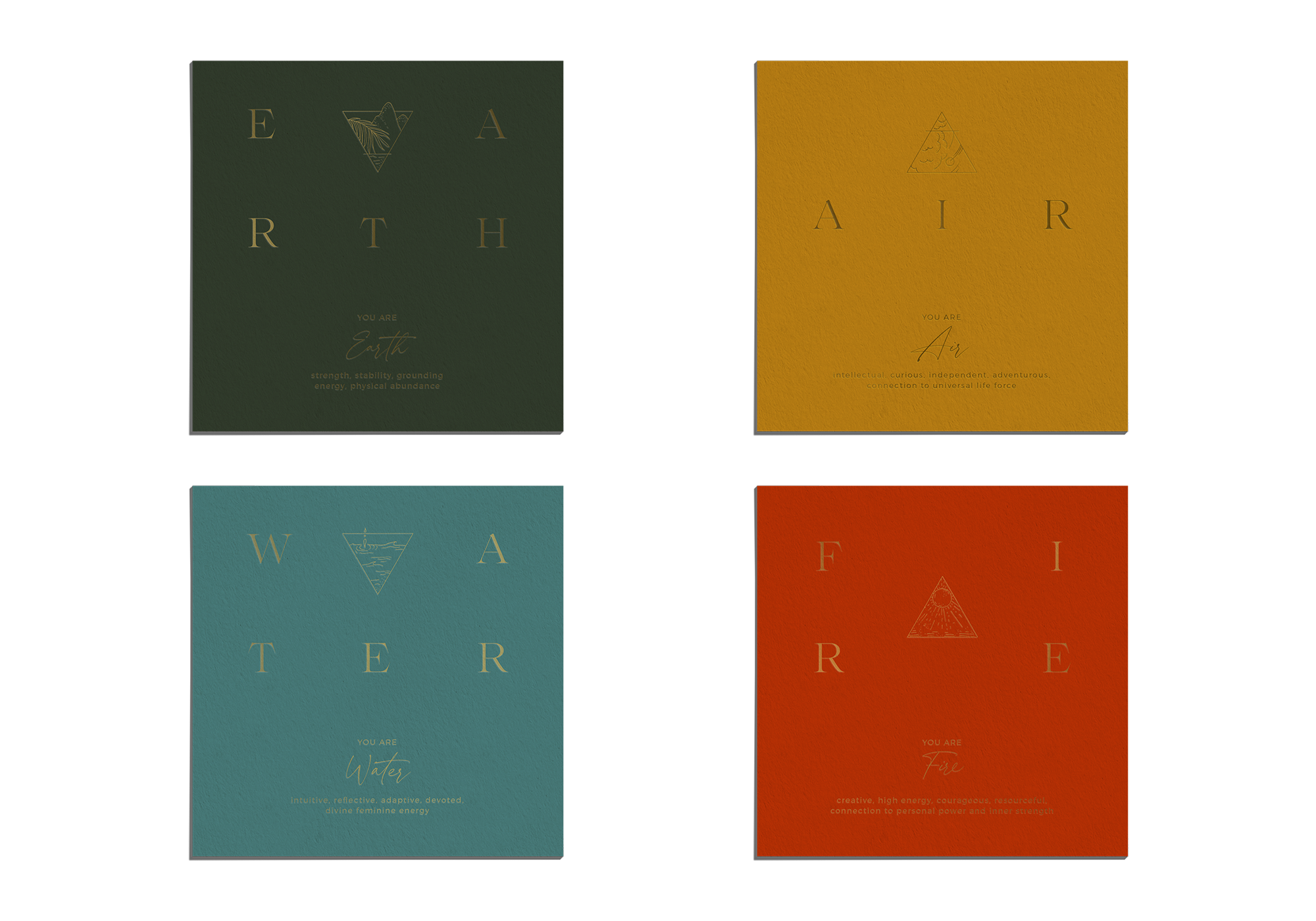 Our goal was to create a brand that reflected Karlyn’s roots and we looked to ancestral wisdom to guide us. Our team created 4 custom illustrations to represent the 4 Elements: Fire, Air, Water and Earth. Taking inspiration from St. Lucia and Africa, our goal was to infuse the brand with Karlyn’s signature bold colours, also found in the lush greenery, waters and sky of the Caribbean.